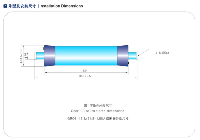 GOR5(XRNT)-15.5油浸式变压器短路保护用高压限流 后备熔断件(以下简称熔断件)适用于交流50HZ,额定电压 15.5KV,额定电流至175A的高压户内电力系统,作为电力 变压器的短路保护。它与GOR4(PRNT)-15.5油浸式变压器 过载保护用高压熔断器串联可提供全范围保护。 |