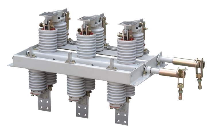 N30-12型旋转式户内高压隔离开关是一种旋转触刀式的新型隔离开关,主要 结构是在三相共底架上,下两个平面上,固定两组绉缘子及触头,通过旋转触刀,从而实现开关的分合闸。